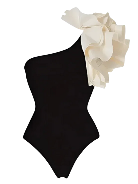 Ruffled Floral One-Piece Swimsuit with Matching Cover-Up – One-Shoulder Monokini for Women