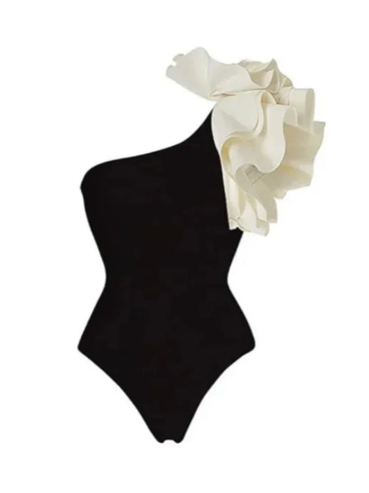 Sexy Floral One-Shoulder Swimsuit with Ruffles and Beach Cover-Up – Women's Swim Set