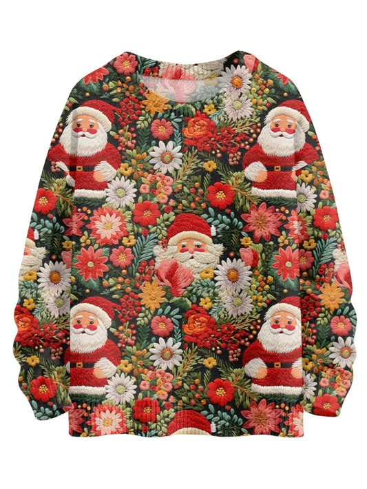 Christmas 3D Red Suit Santa Among Flowers Print Sweatshirt