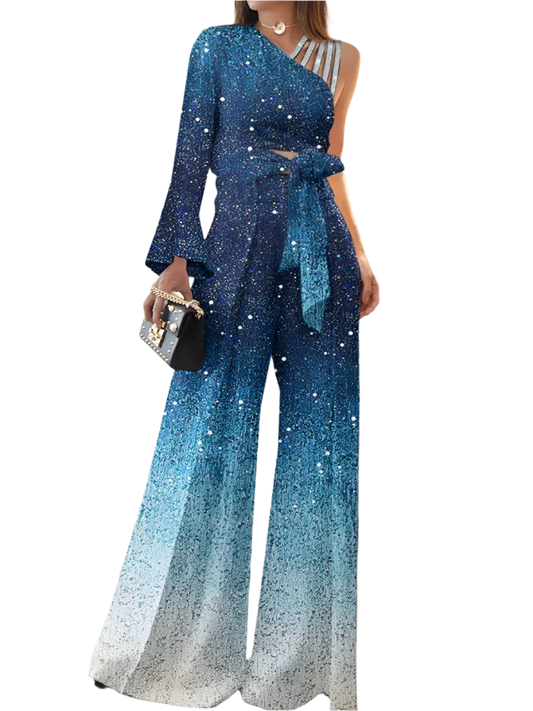 Women's Glitter Wide Leg Elegant One Piece Formal Jumpsuit