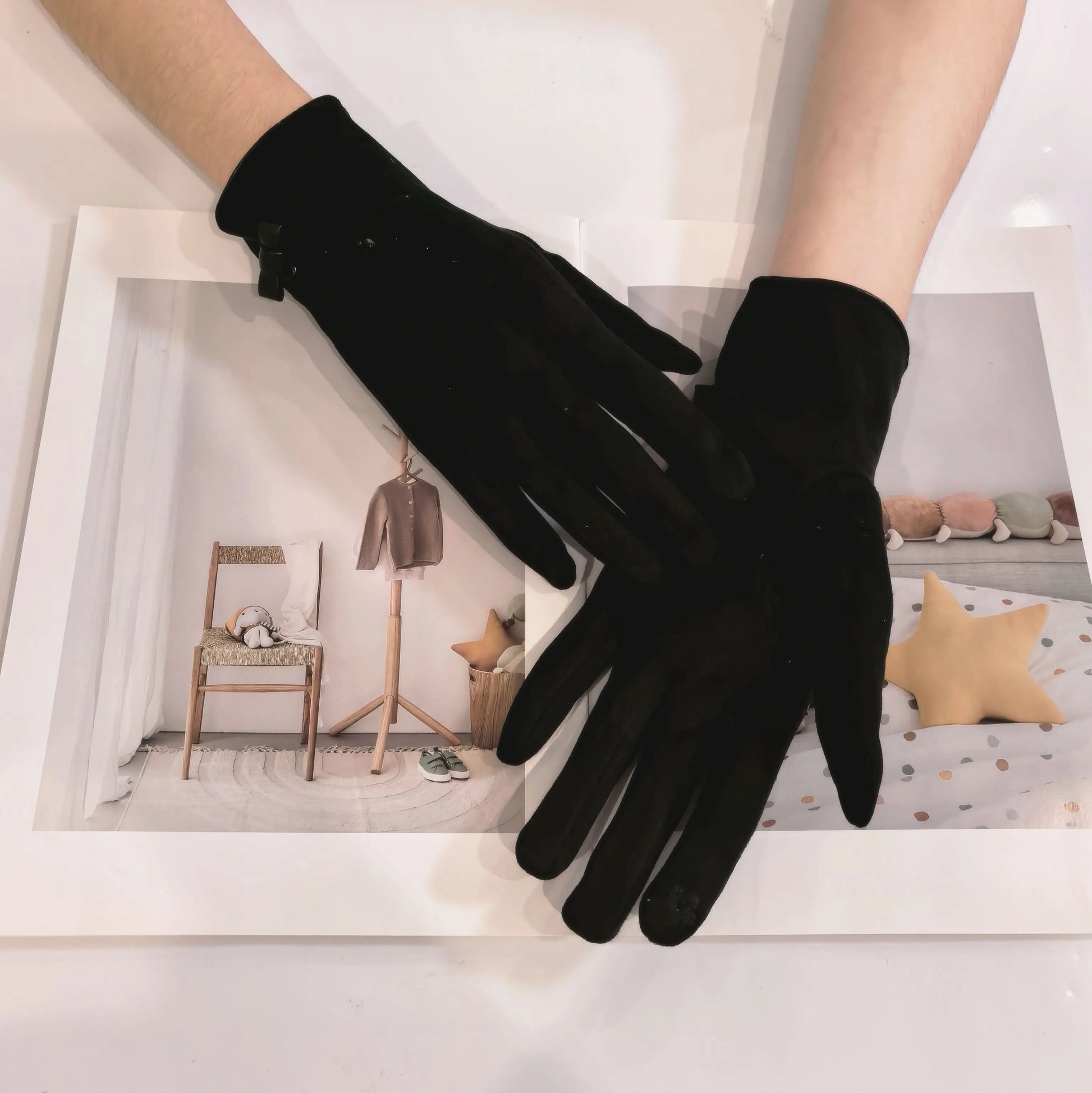 Cotton Polyester Bow Thickened Touch Screen Driving Gloves