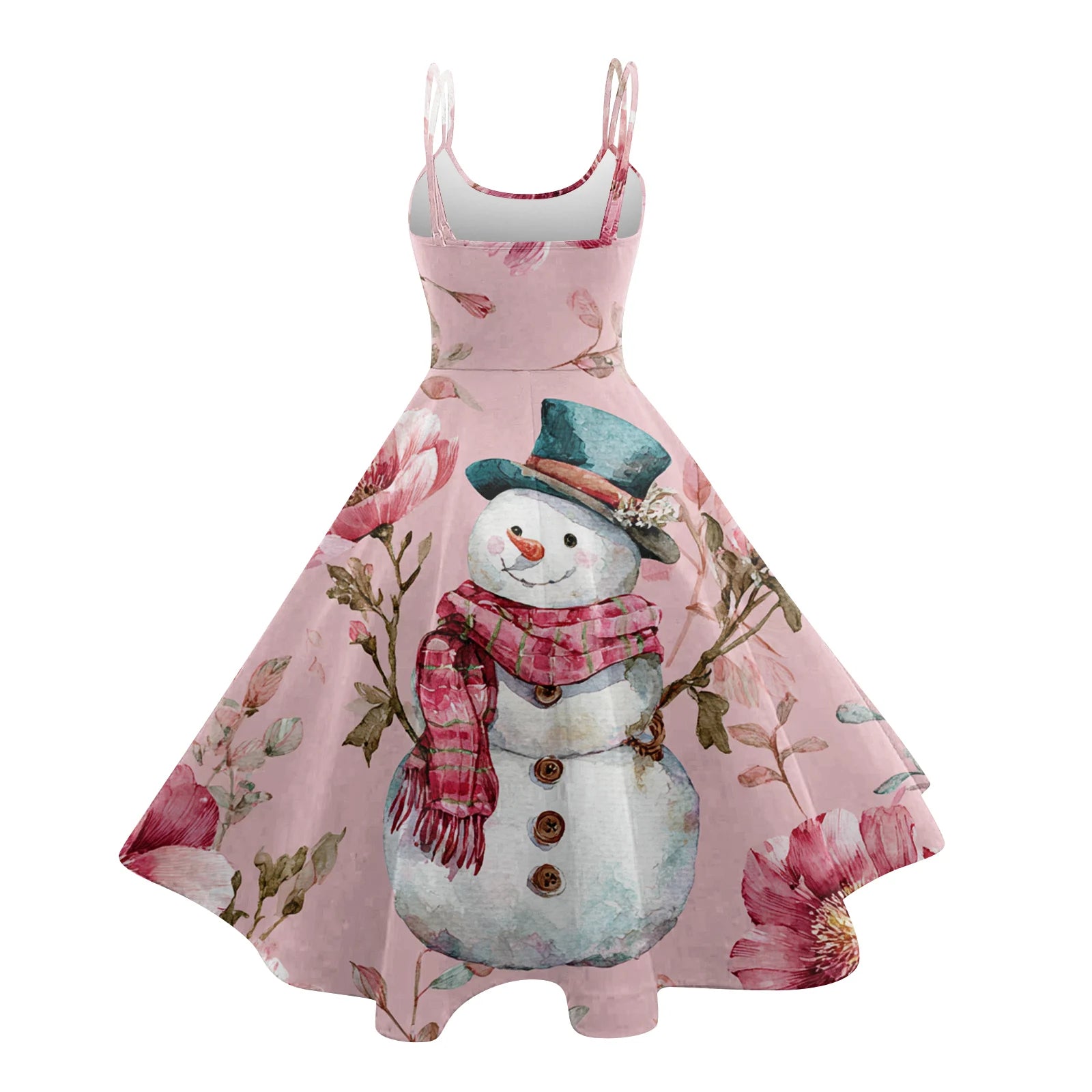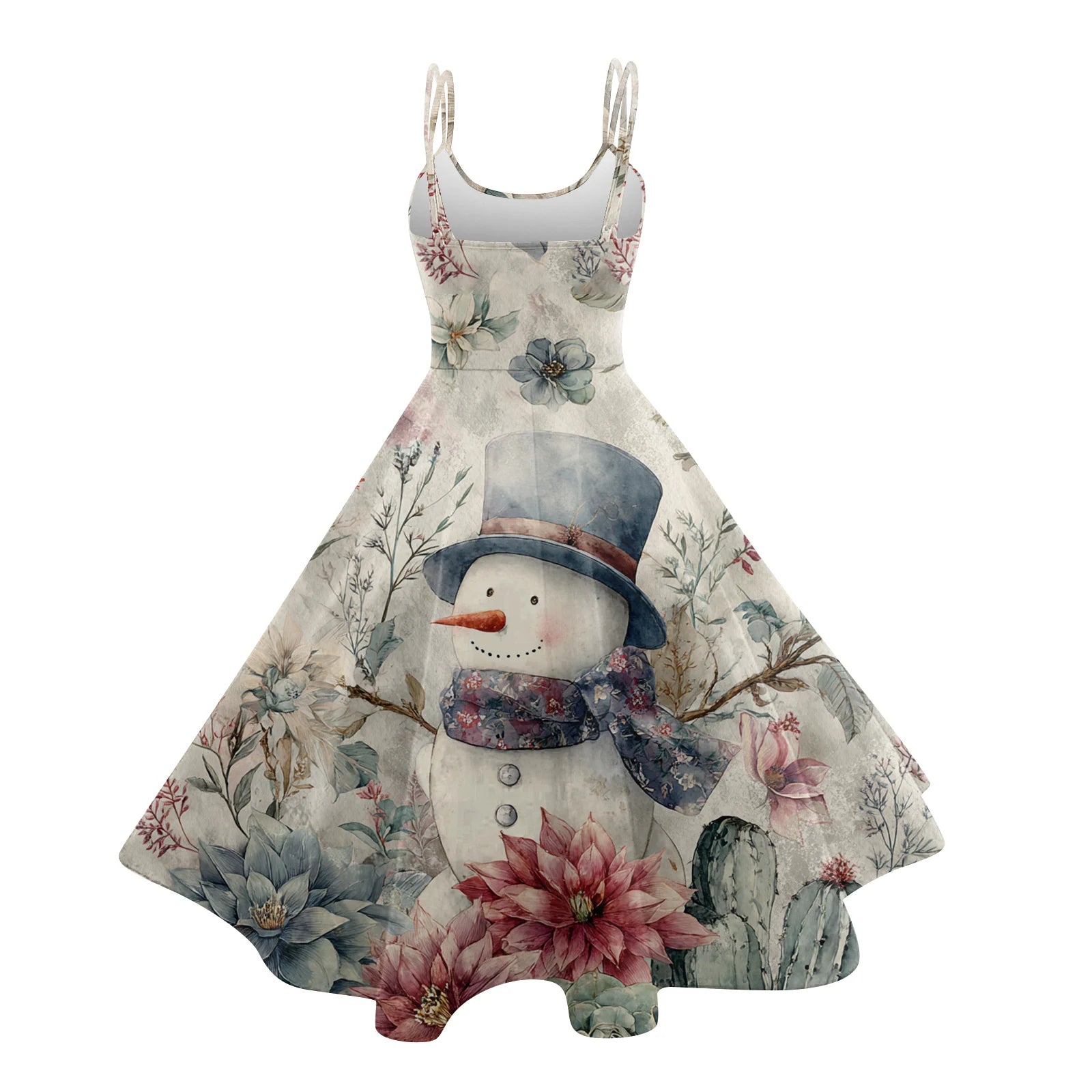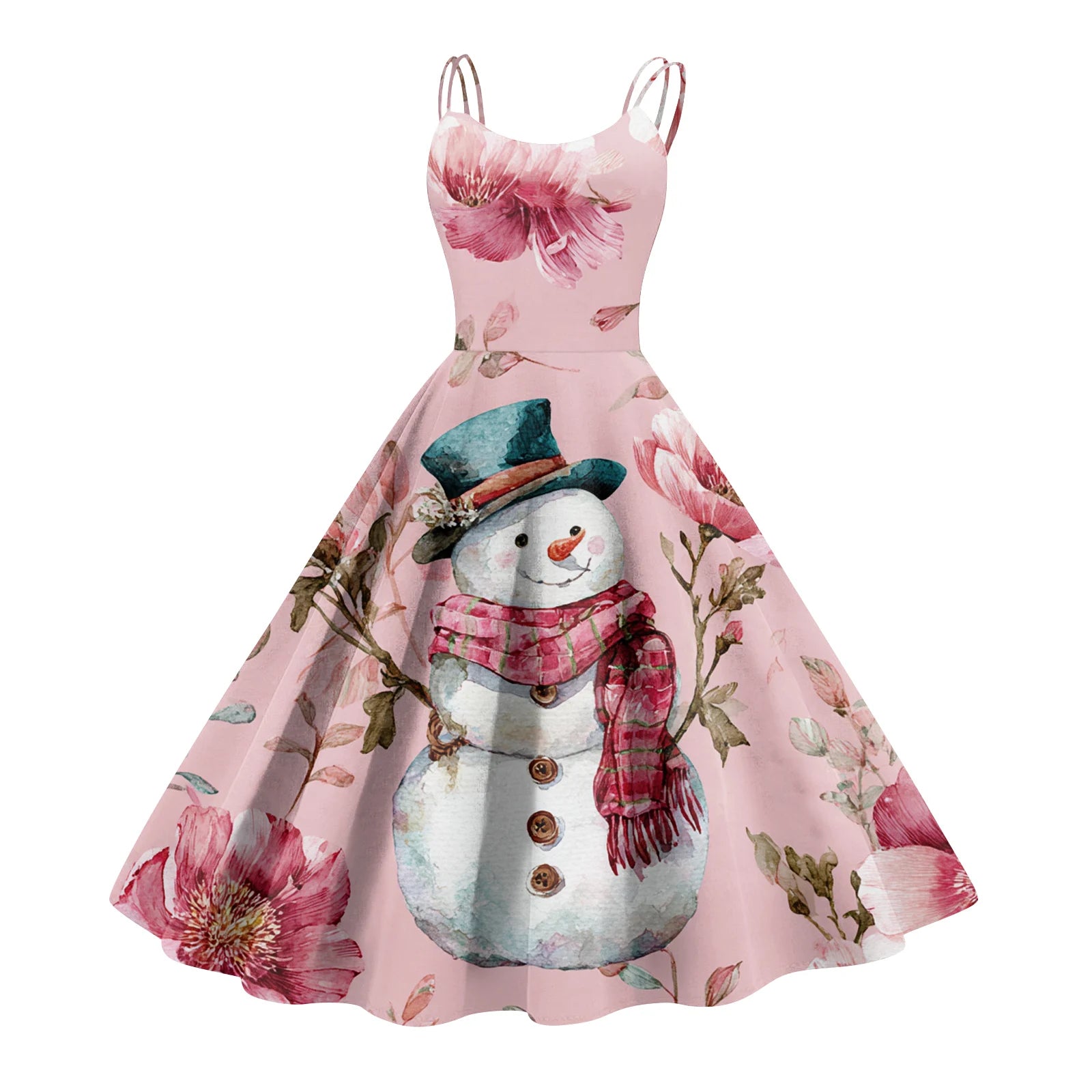 Slim Spaghetti Strap Christmas Polyester Dress Women's