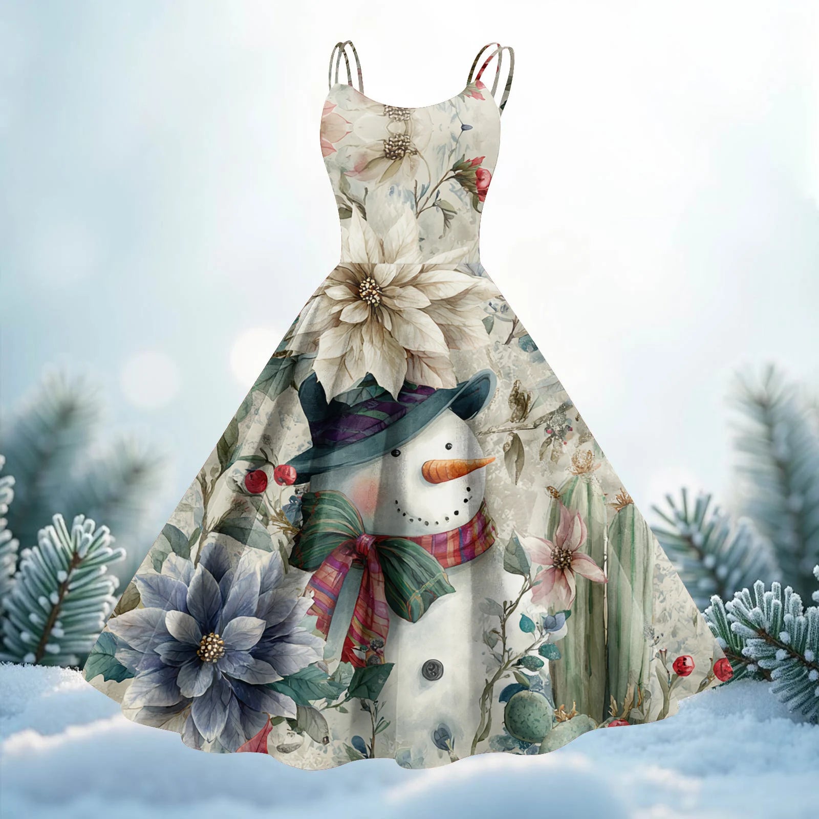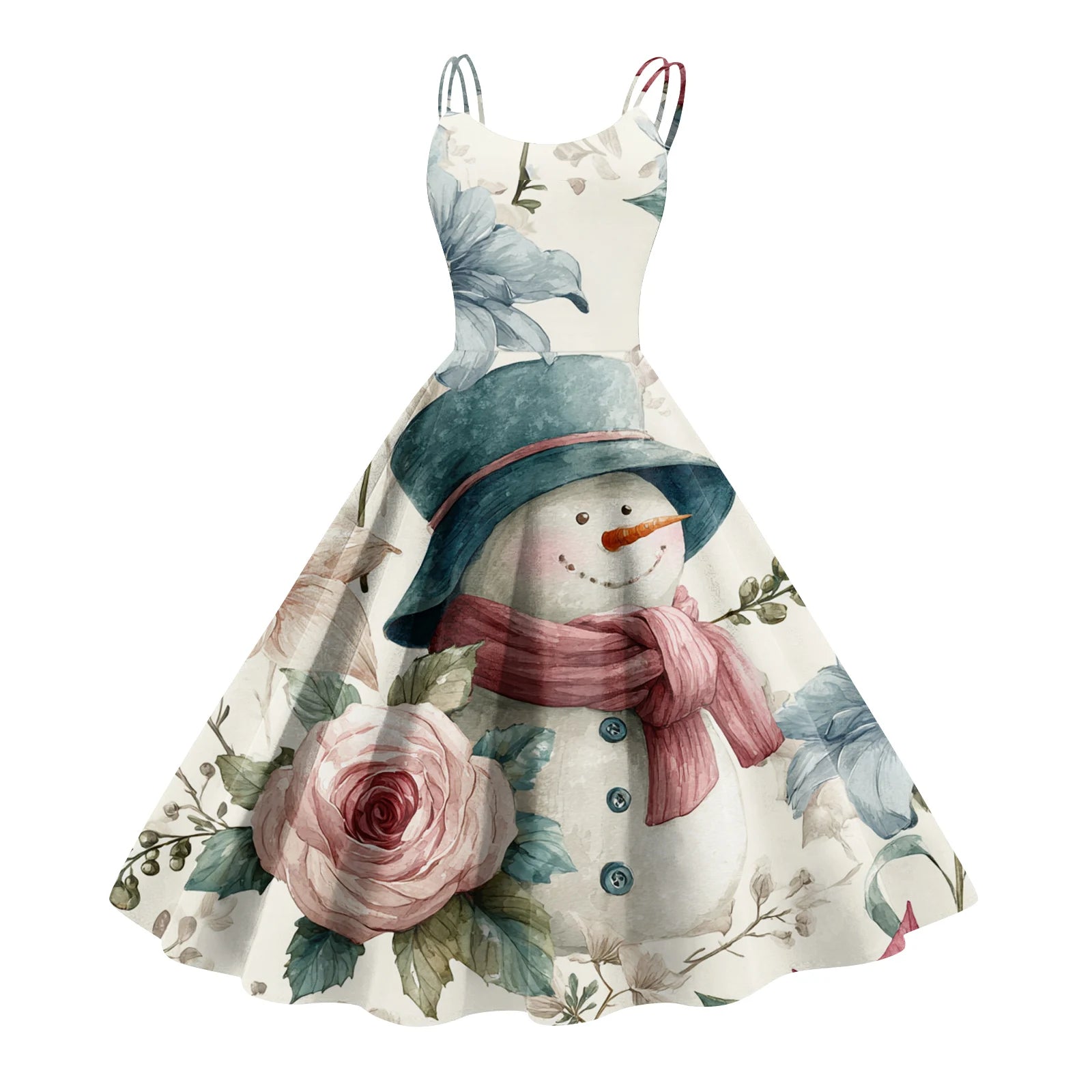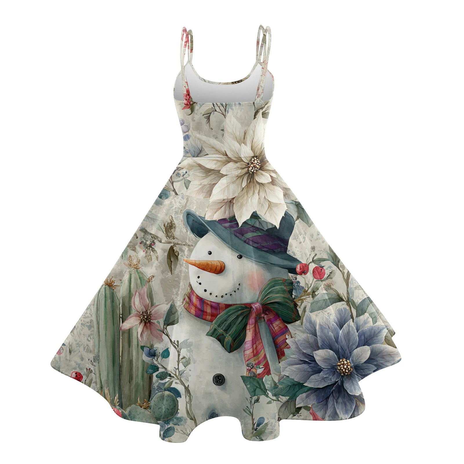 Slim Spaghetti Strap Christmas Polyester Dress Women's