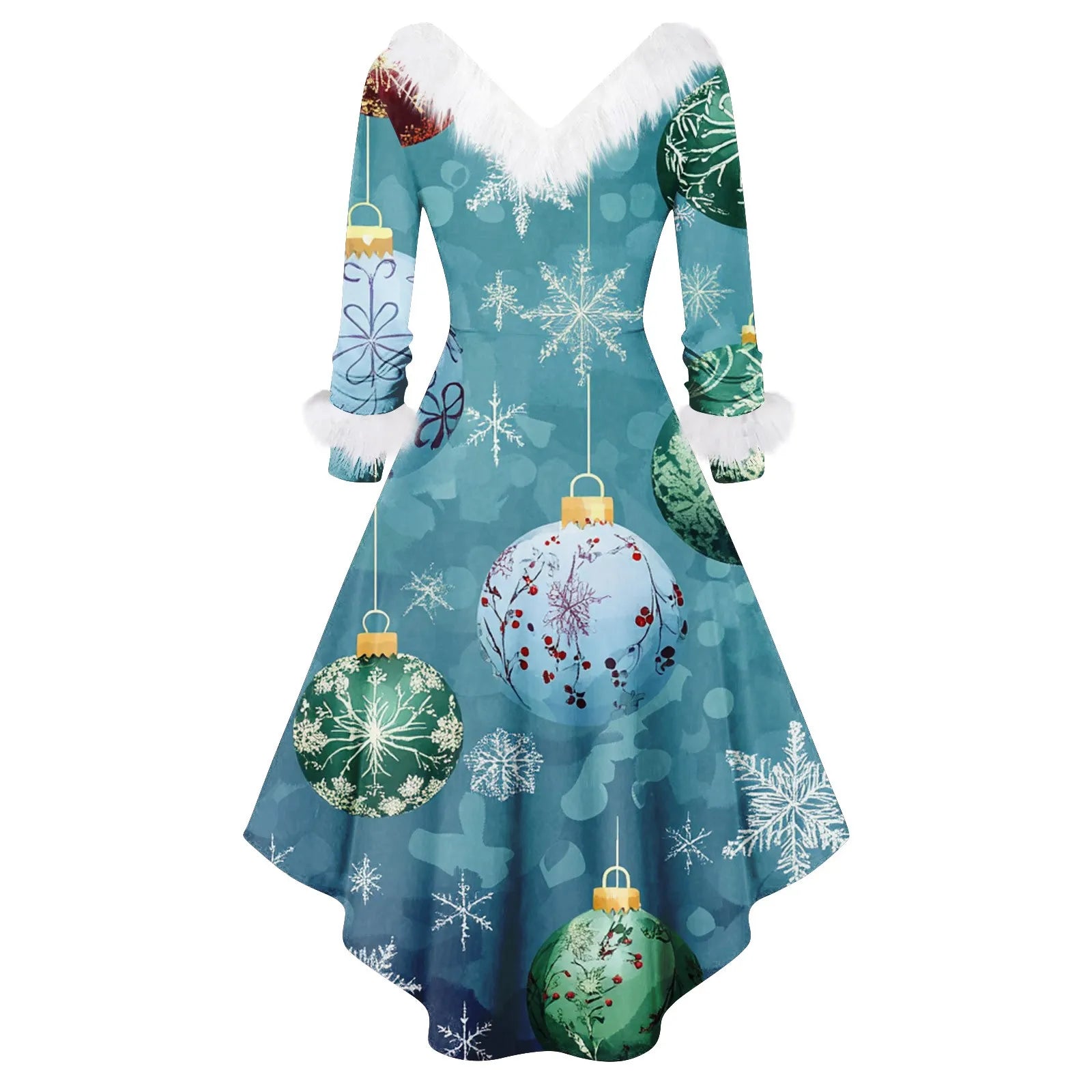 Women's Spliced Christmas Furry A Line Knit Dress Regular