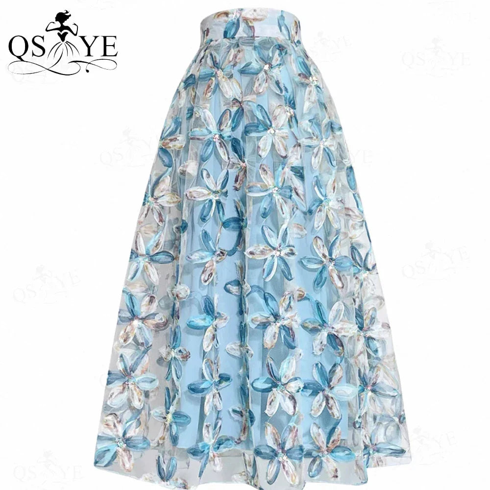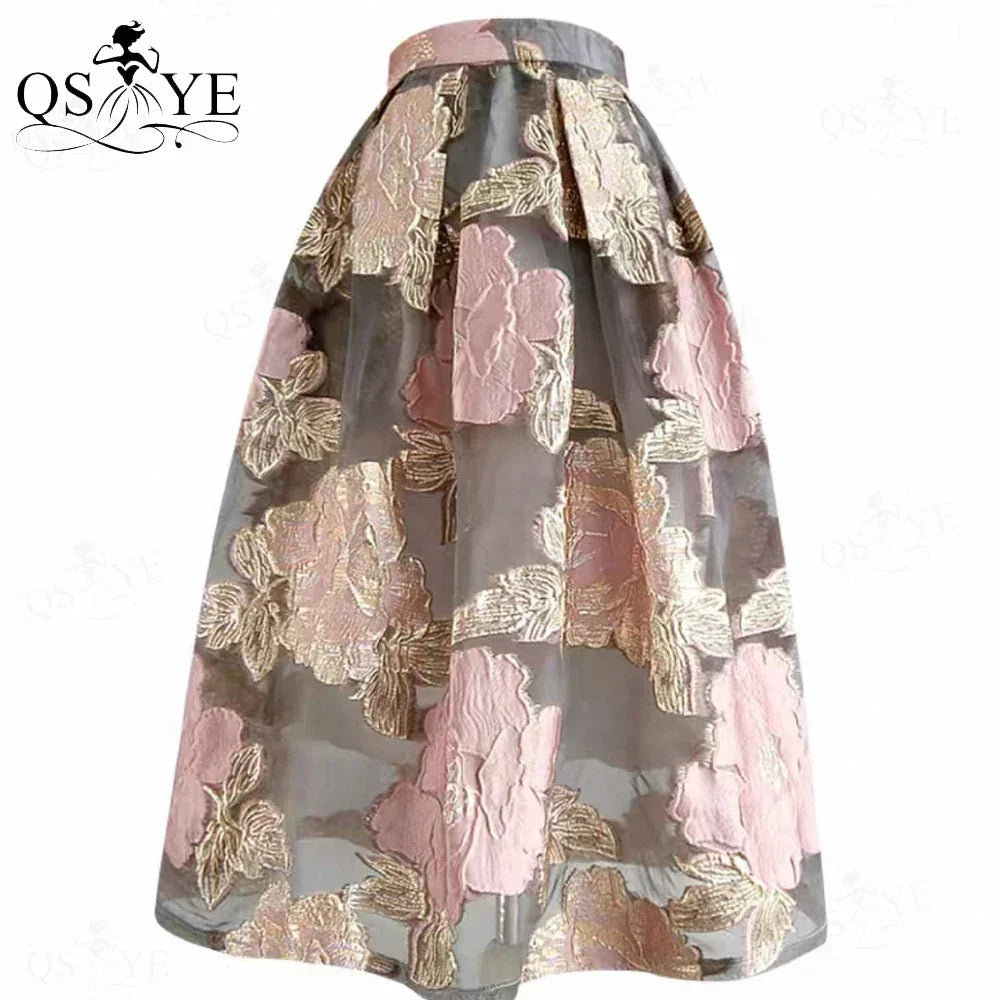 Fuchsia Cutwork Embroidery A-Line Satin Overlay Maxi Evening Gown Skirt