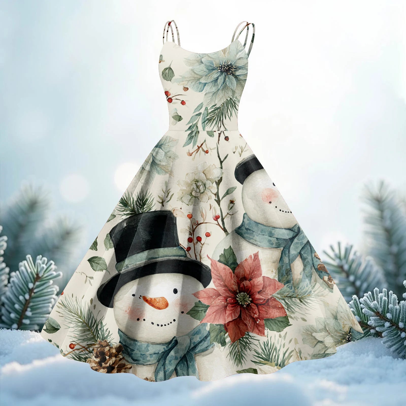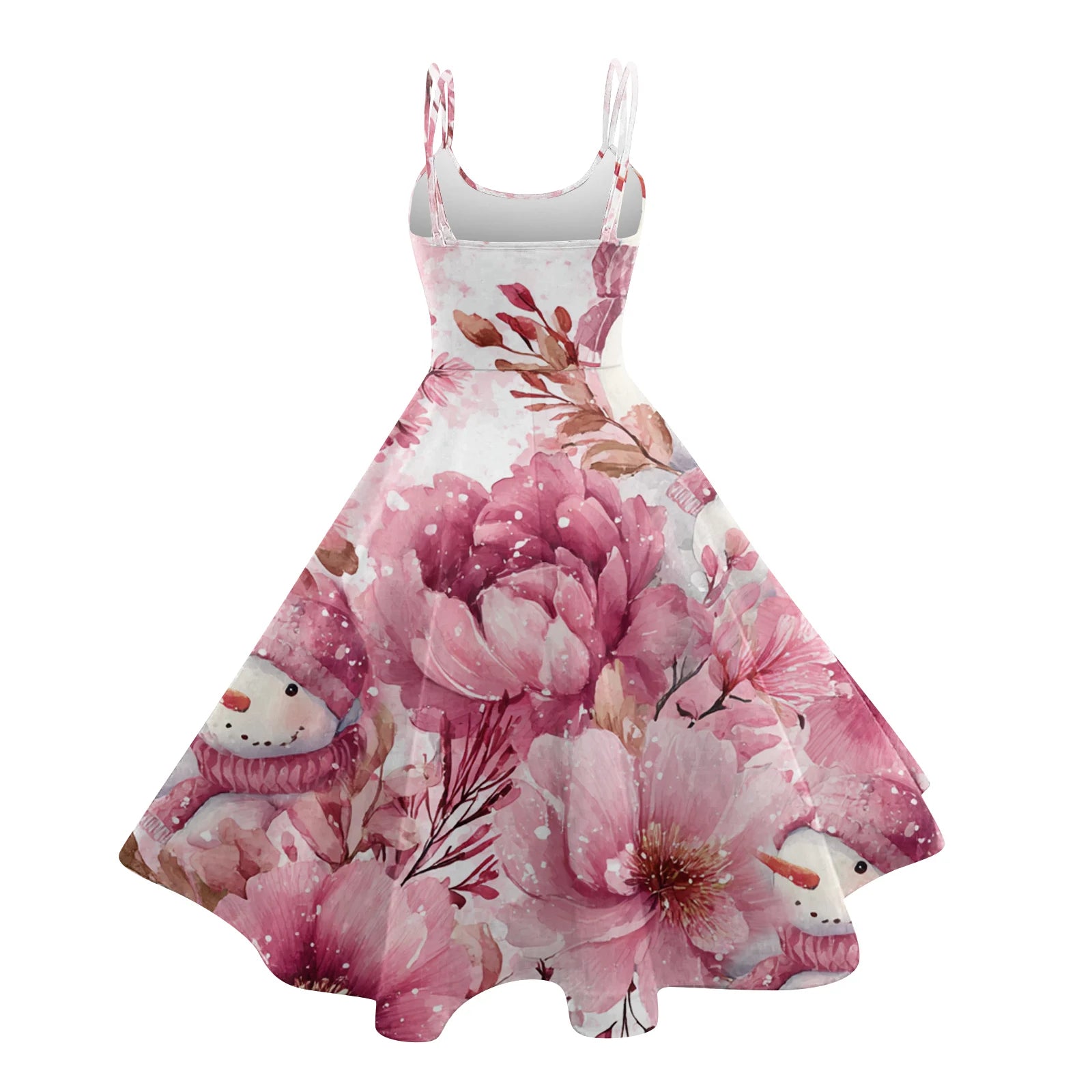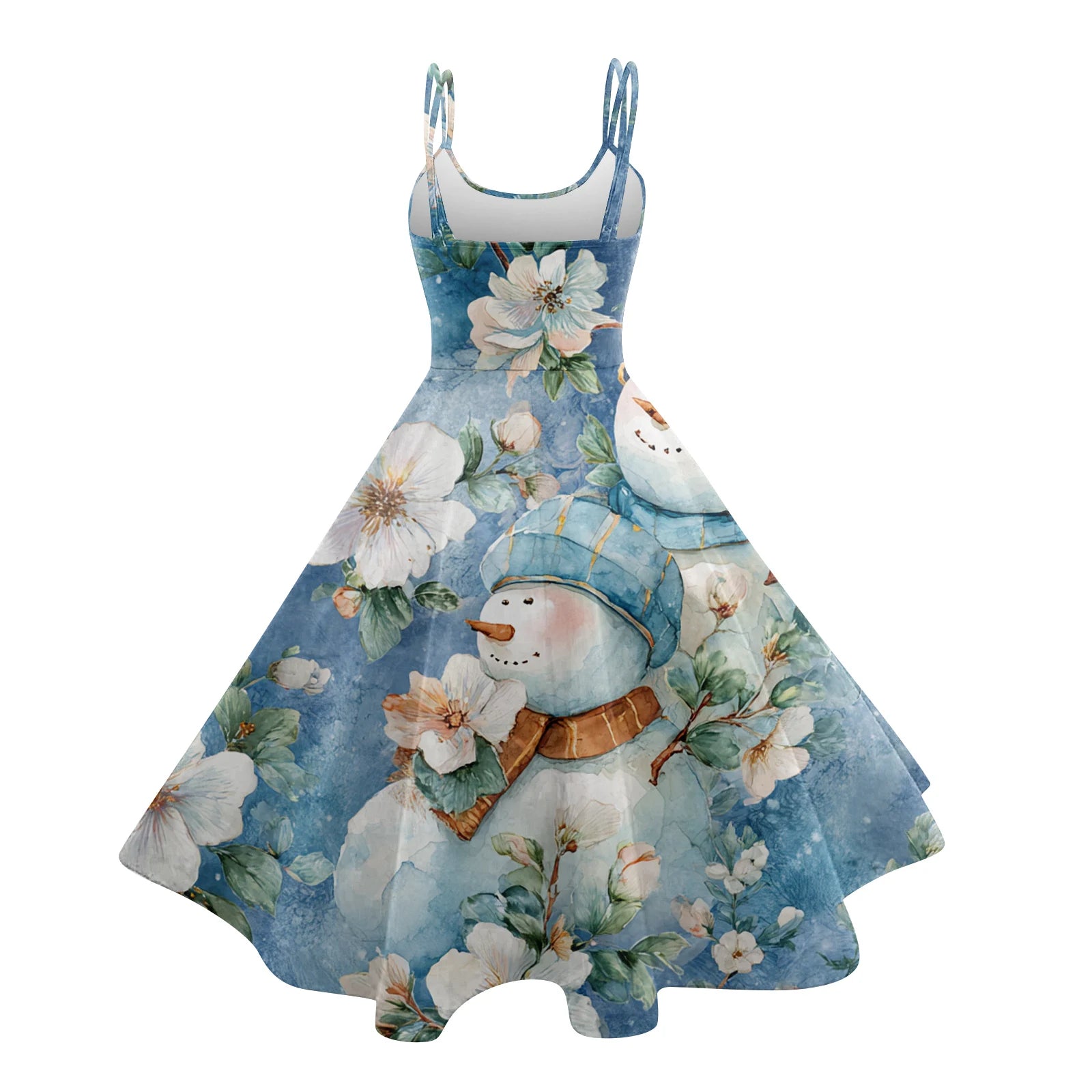 Women Christmas Print Spaghetti Strap Polyester Dress