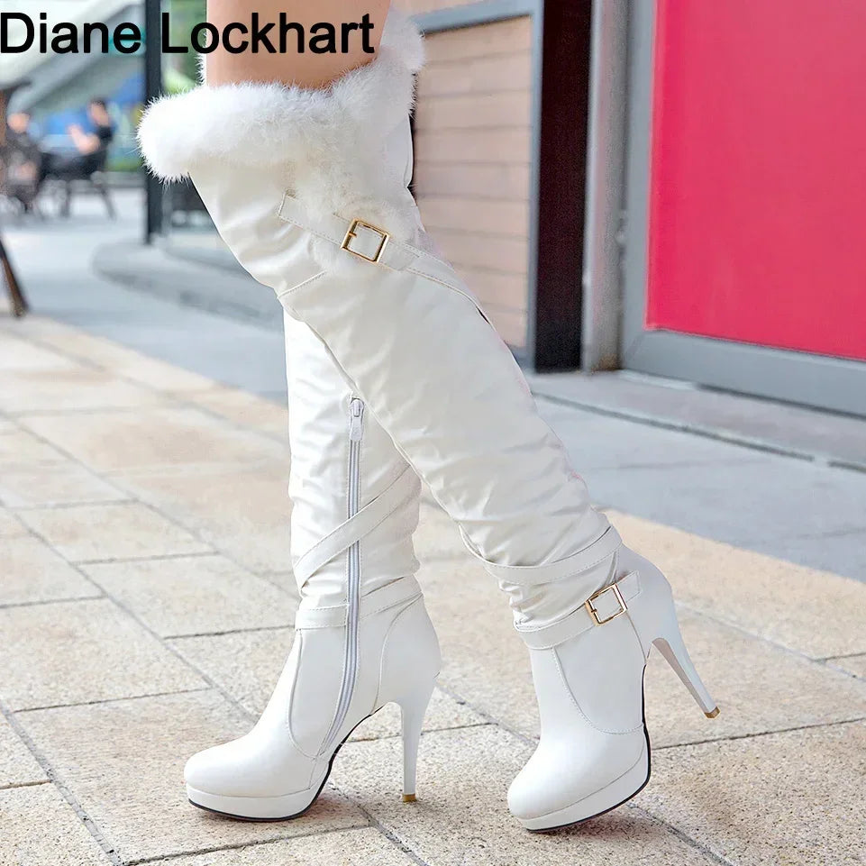 PU Leather Platform Over Knee Boots For Women Warm Winter