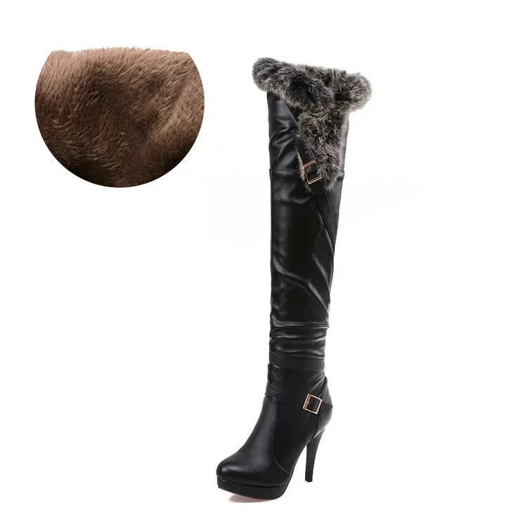 PU Leather Platform Over Knee Boots For Women Warm Winter