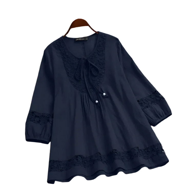 Cotton Linen Lace Splice Top – Women’s 3/4 Sleeve Casual Tunic