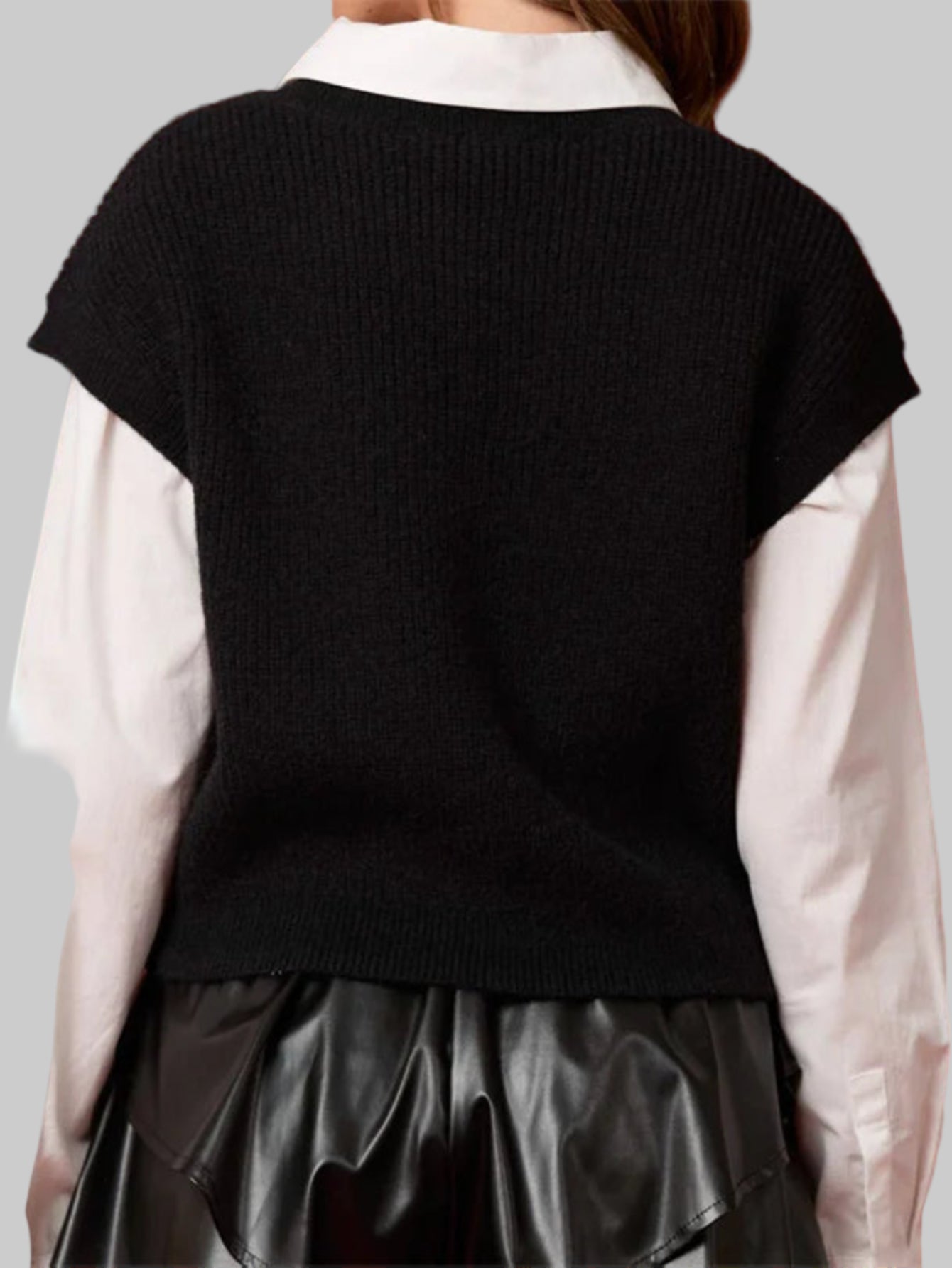 This holiday vest delivers festive sparkle with Nutcracker and Santa motifs on a black base, ideal for layering over a solid top for gatherings, parties, or photo moments, pairing easily with jeans, skirts, or dress pants.